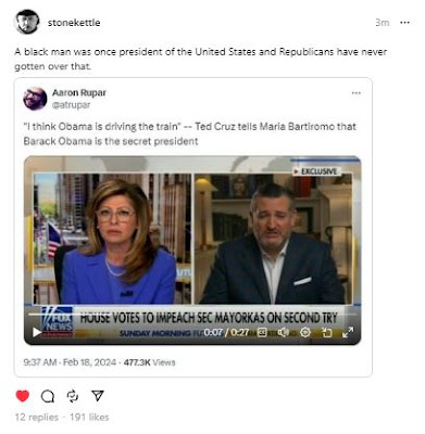 And apparently, nobody's ever told Ted Cruz that he has the wrong kind of last name to get to play in that kind of a game. Let these fucking people have what they want, and their closed society of deals and secrets and secret deals and "Politics as Entertainment" mixed with contempt and repression and the wrath of the Mob for the proles will become even more closed to...and more repressive for...anyone not them, not less.